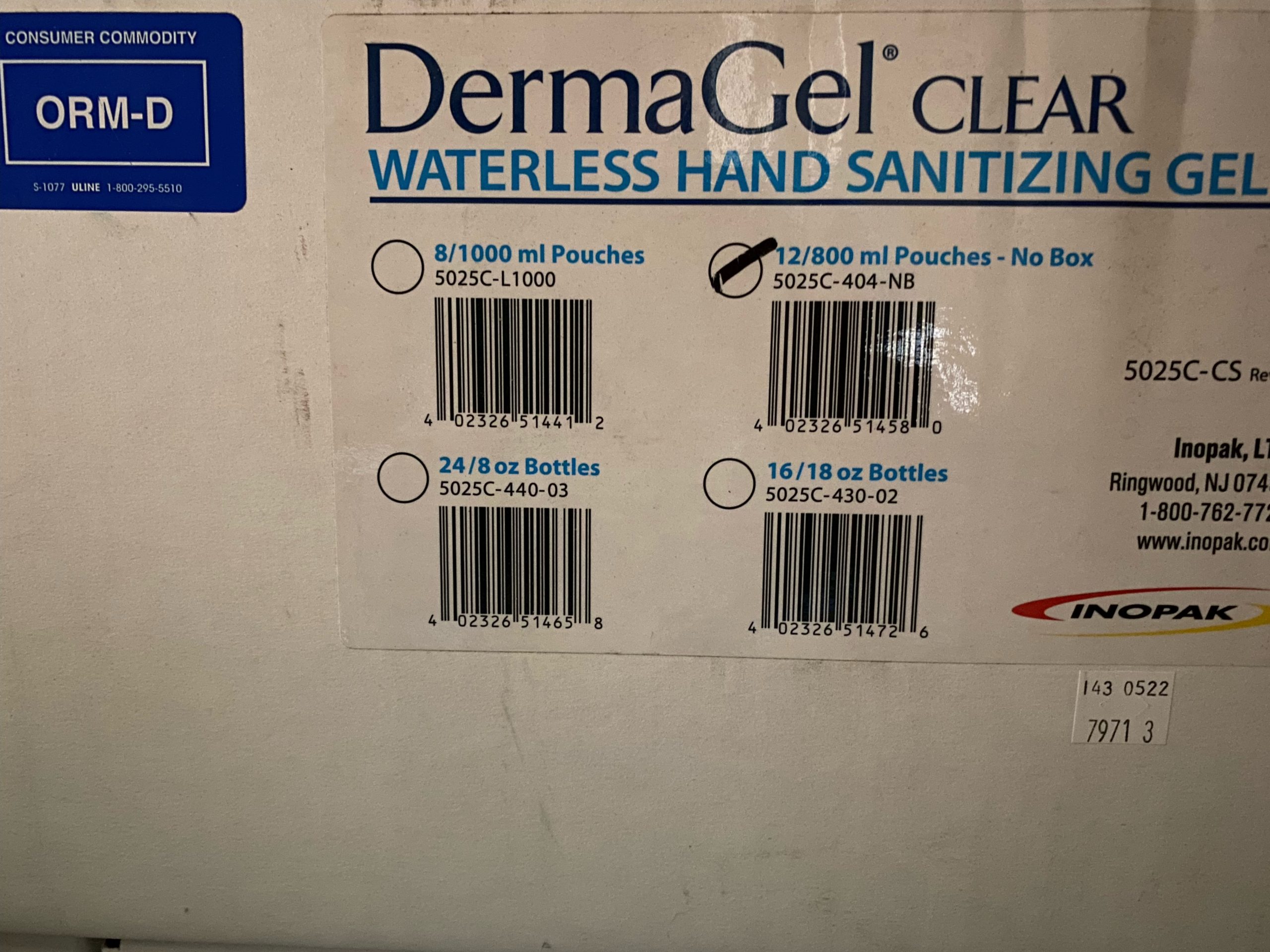 DermaGel Clear 800ml. Waterless Hand Sanitizing Gel