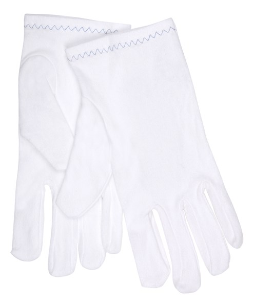 Large White Inspectors Gloves Reversible and Hemmed 100% Stretch Nylon, Low Lint Inset Thumb
